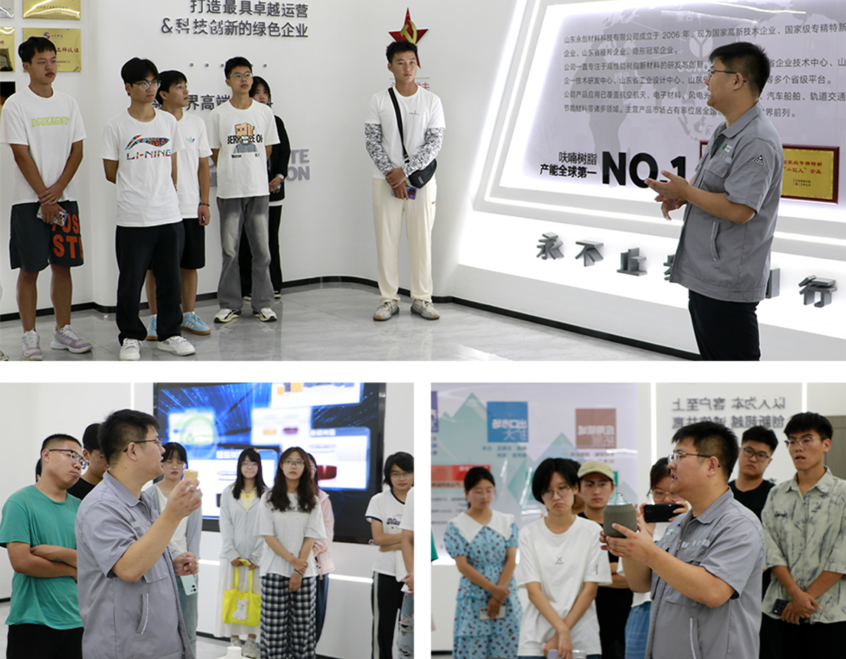 活动当天,朝气蓬勃的同学们走进山东永创,实地参观公司展厅、厂区。在我公司研发负责人的详细讲解下,同学们深入了解新材料产业的发展现状和技术创新成果。